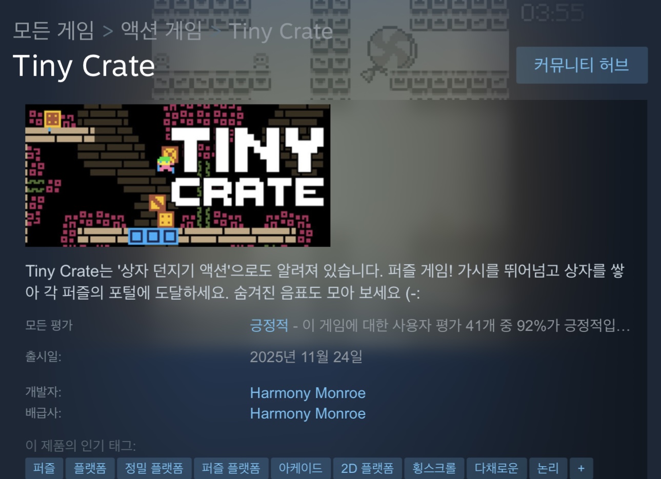 : STEAM 기준 퍼즐 게임.