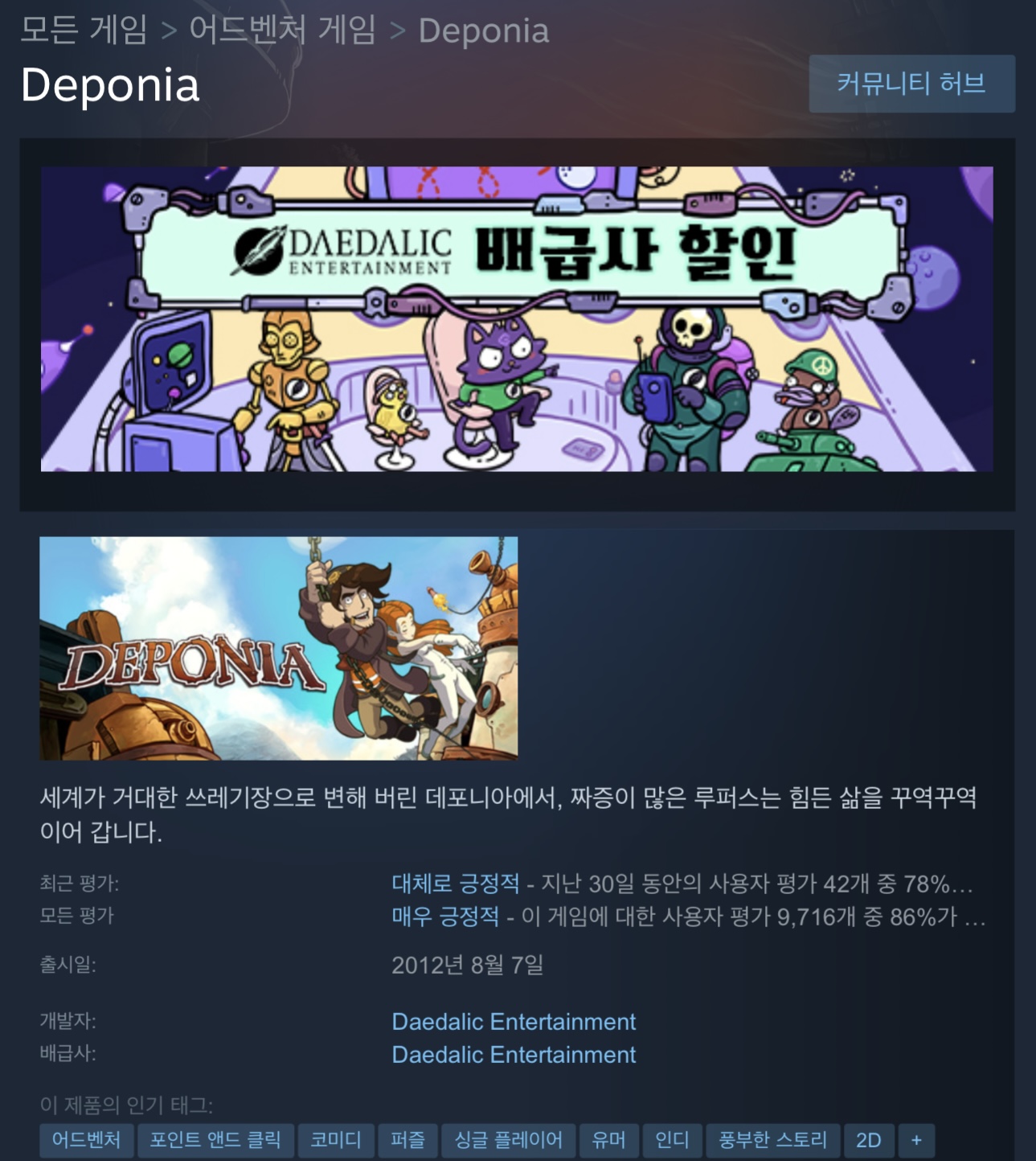 : STEAM 기준 어드벤처 게임.